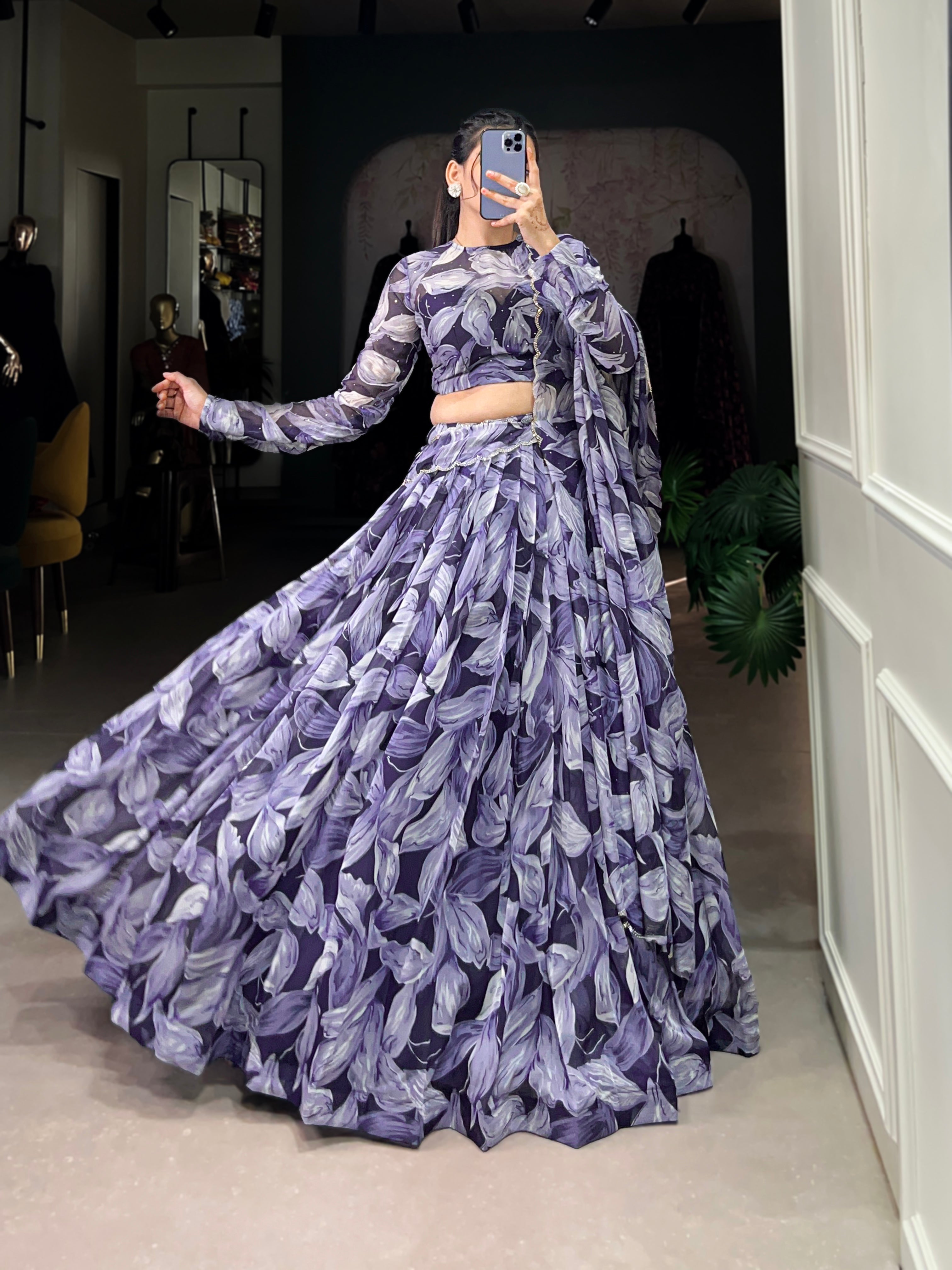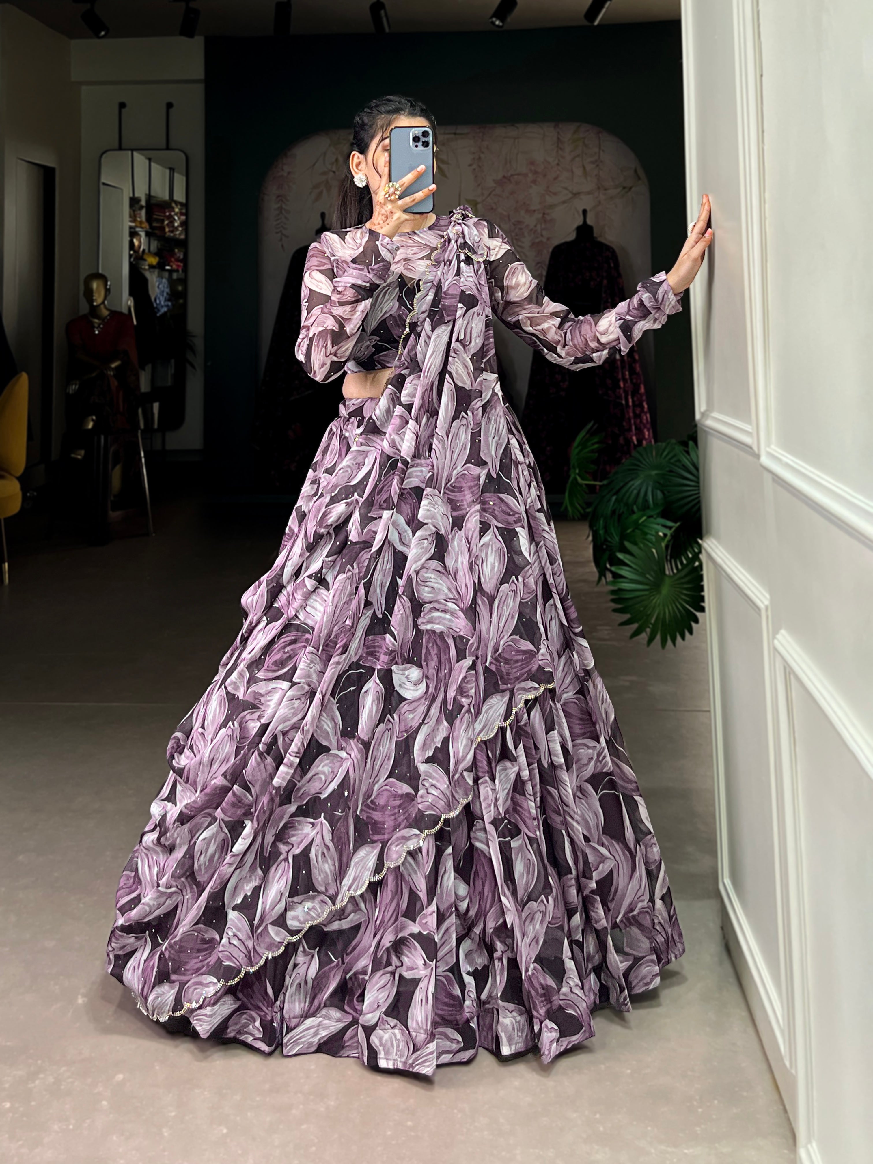 Glamorous Tabby Silk Hotfix Printed Lehenga Series