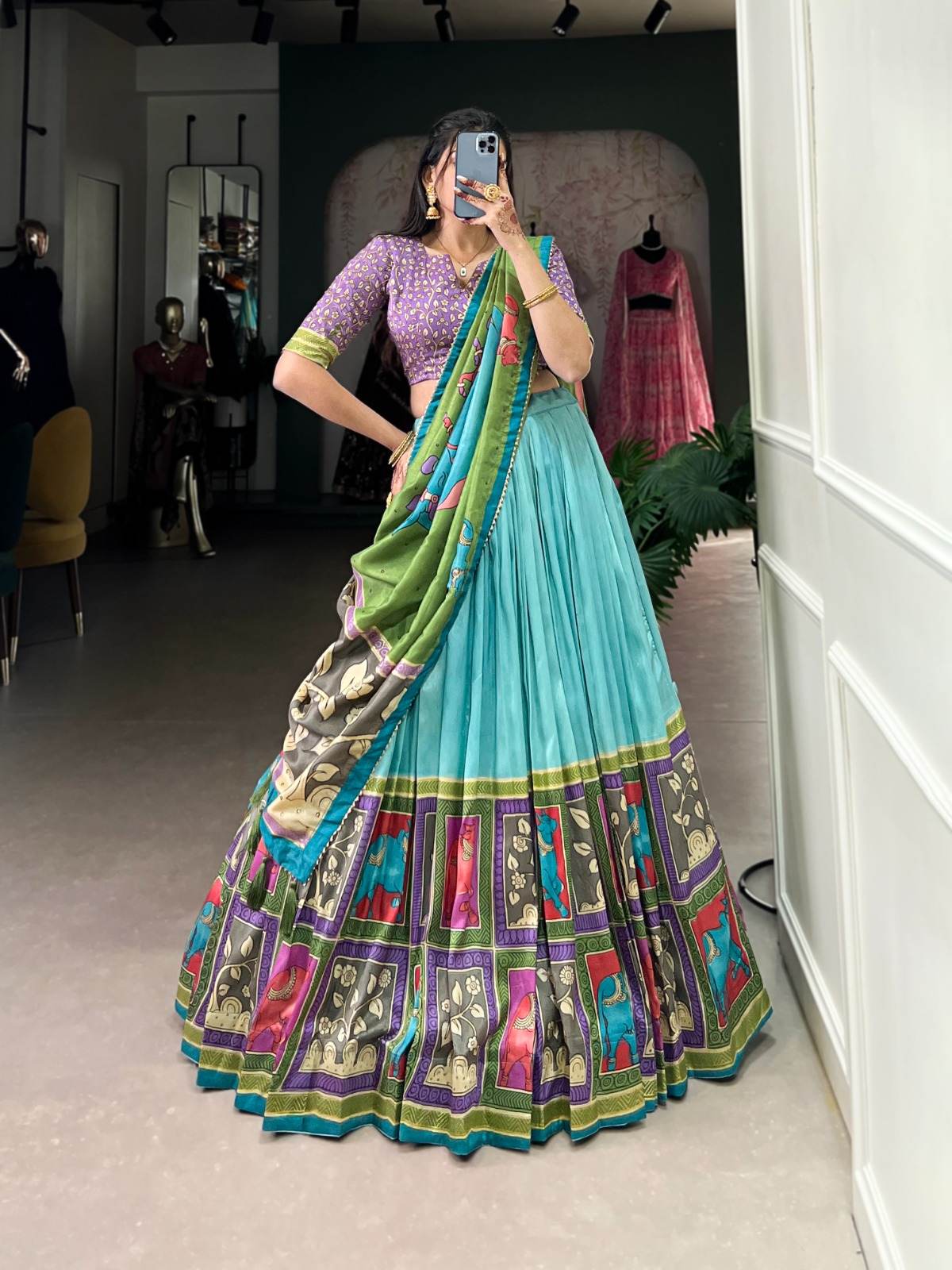 Vaishnavi Tasar Silk Kalamkari Lehenga Choli